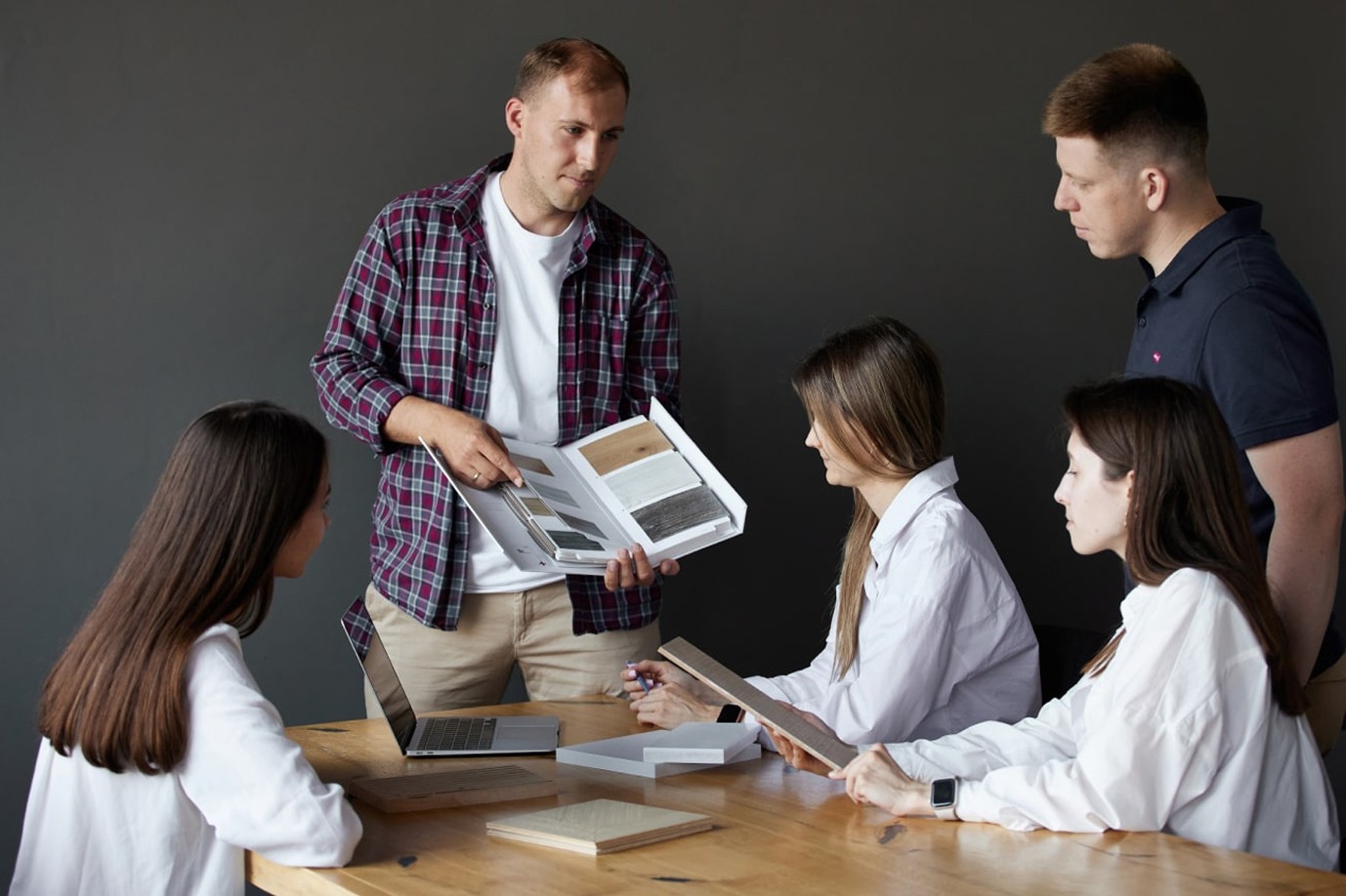 В нашем офисе-шоуруме представлены актуальные материалы — их можно увидеть, потрогать и утвердить прямо на месте, без лишних изнурительных поездок по городу.