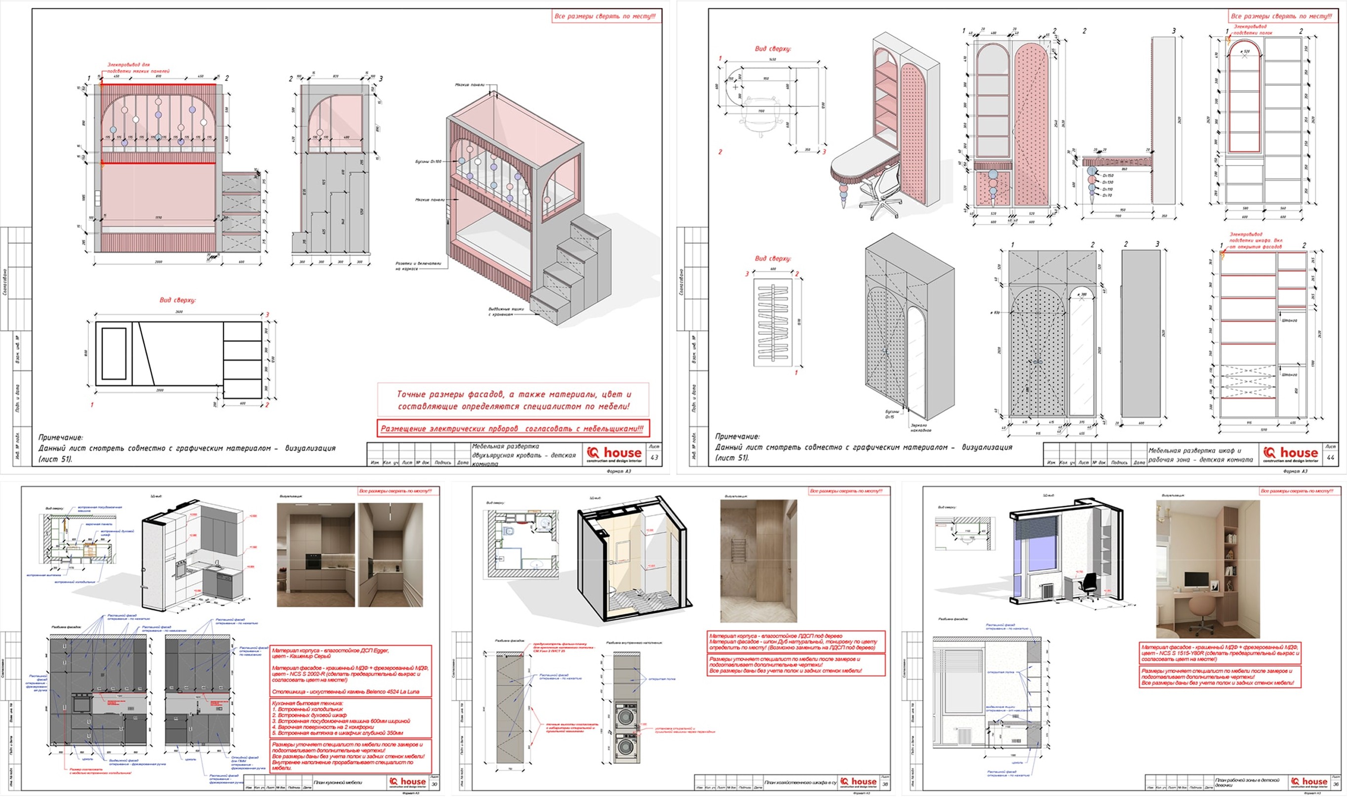 - Детализация возводимых конструкций — развертки возводимых конструкций и перегородок с нужными высотами и размерами;