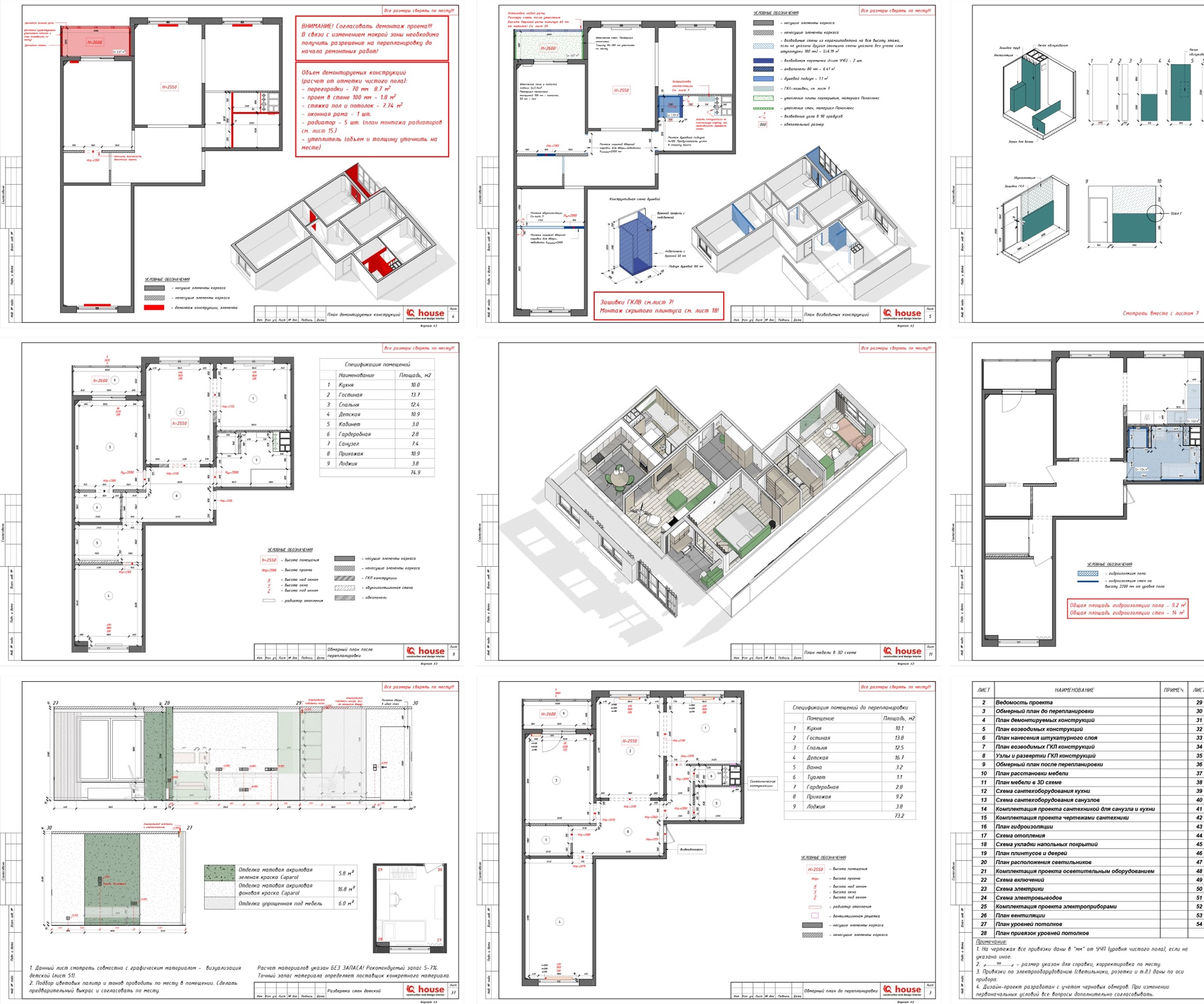 - План возводимых конструкций и перегородок — план новых возводимых стен и перегородок для получения итоговой планировки.