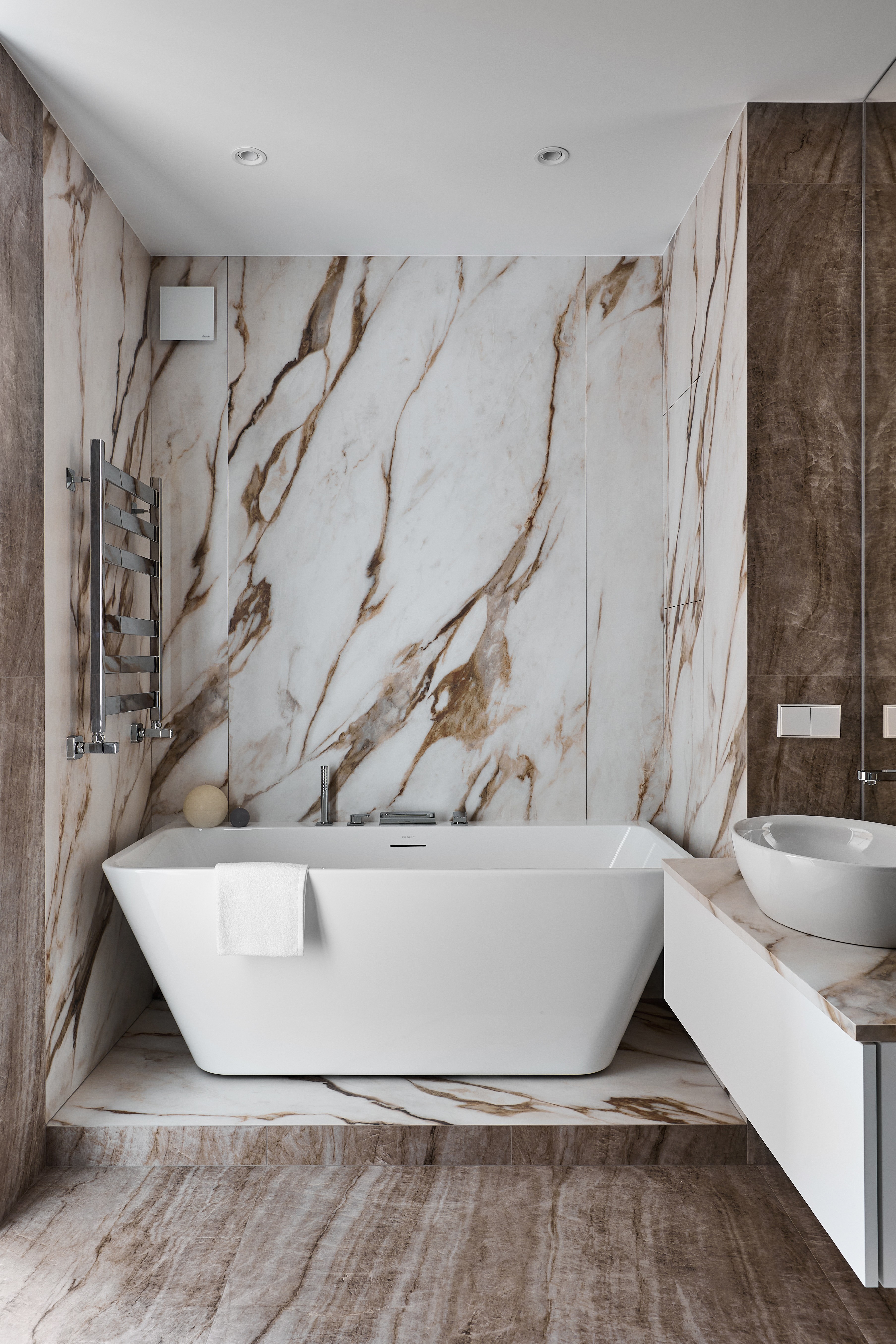 Каменные ванны - одни из самых любимых и используемых нами в проектах. Важно понимать, что речь не идет о натуральном камне, это ванны из искуственного камня - смесь каменной крошки и акрила.