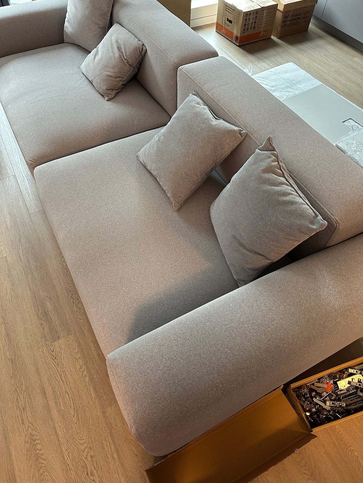 В гостиной расположился модульный раскладной диван, для тех случаях, когда кто-то задержится и останется на ночевку в квартире.