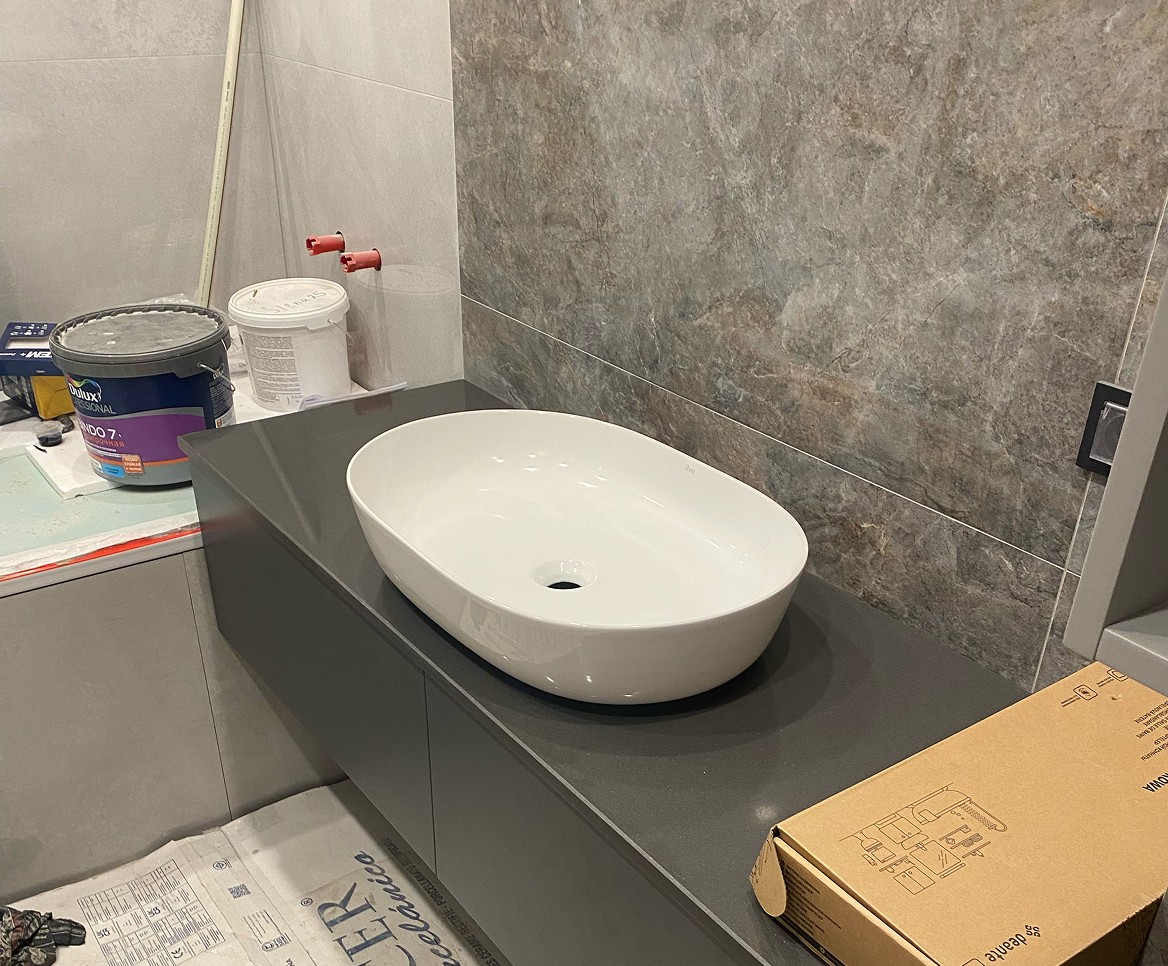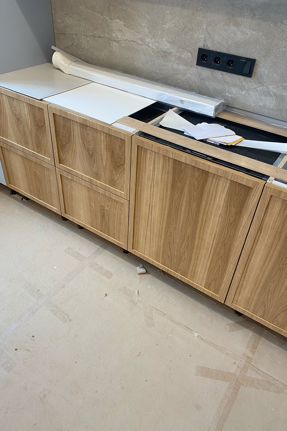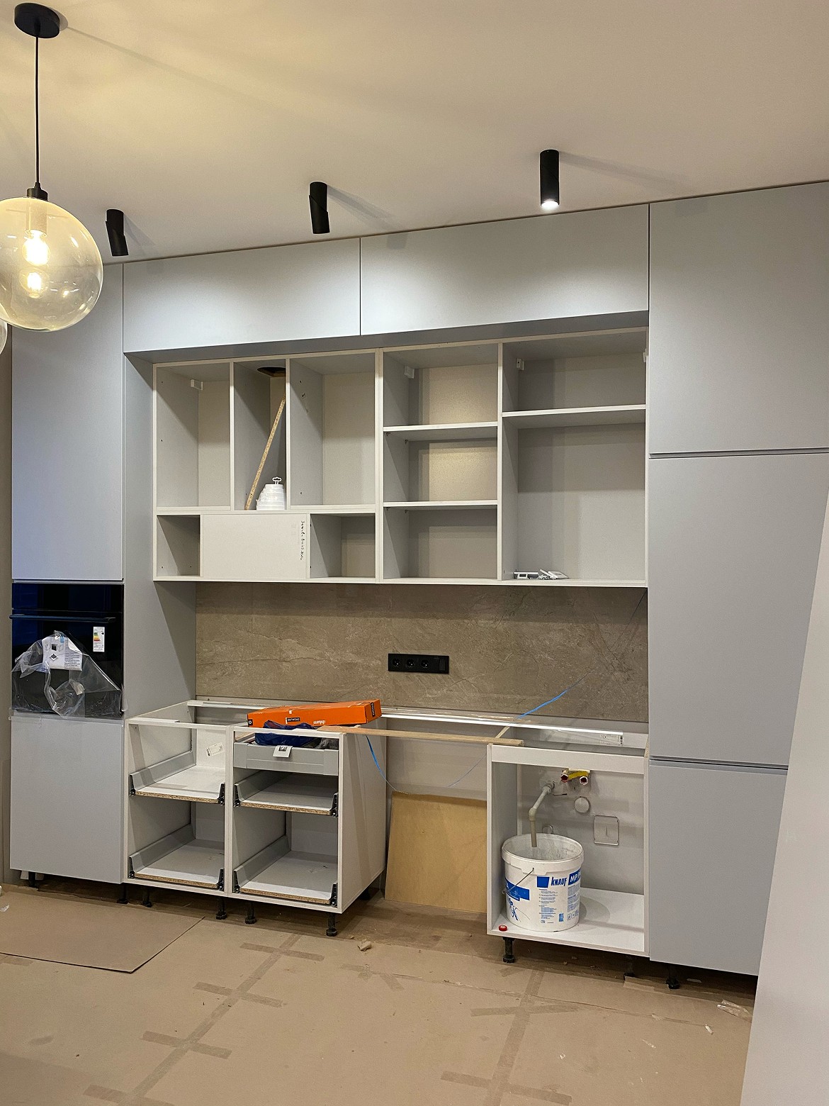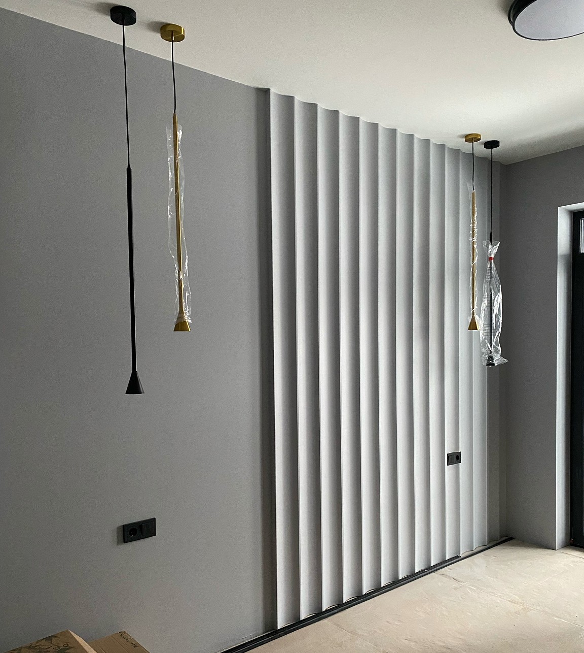 Особенностью квартиры также стало то, что здесь оштукатуренные потолки, мы не стали опускать их, так как в данной застройке потолки 2,85 метра, что выше, чем во многих стандартных застройках города Минска, и нам хотелось сохранить эту высоту помещений.