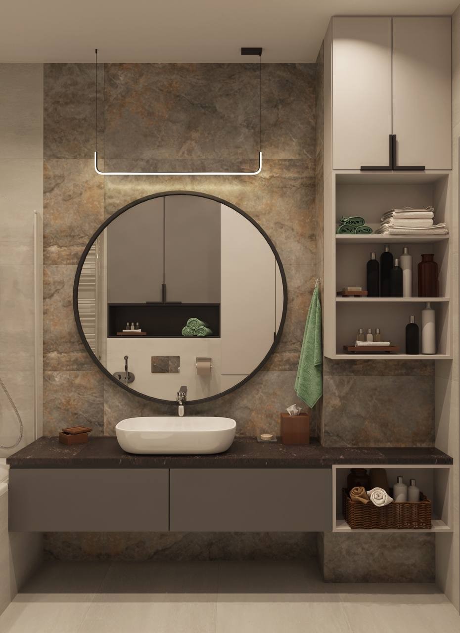В интерьере большое количество открытых полочек, многие боятся этого, но хозяйка квартиры очень любит хранить памятные ей вещи со всех уголков мира, она очень много путешествует и всегда привозит что-то особенное.