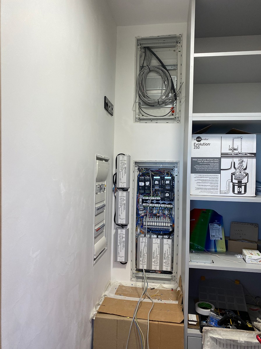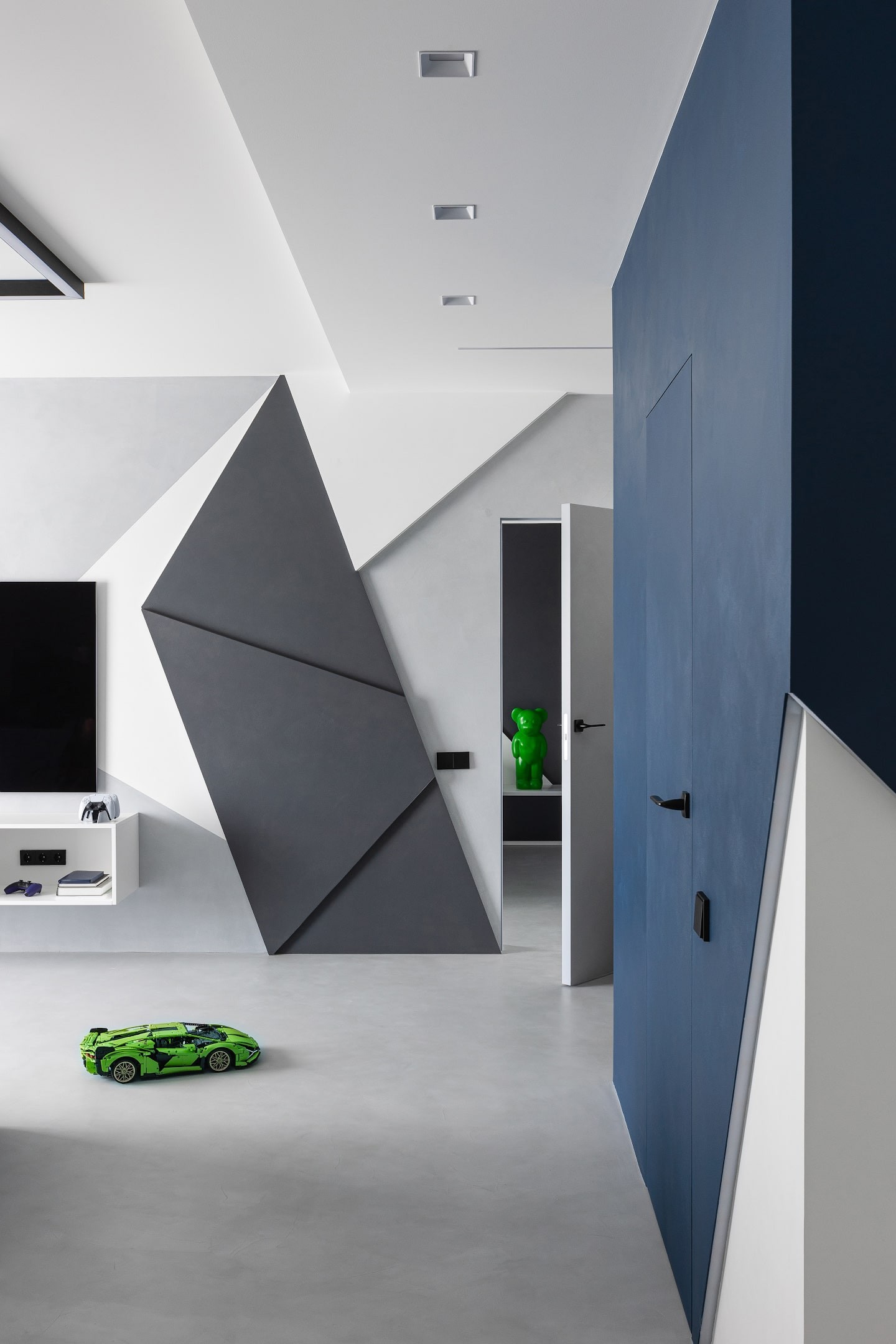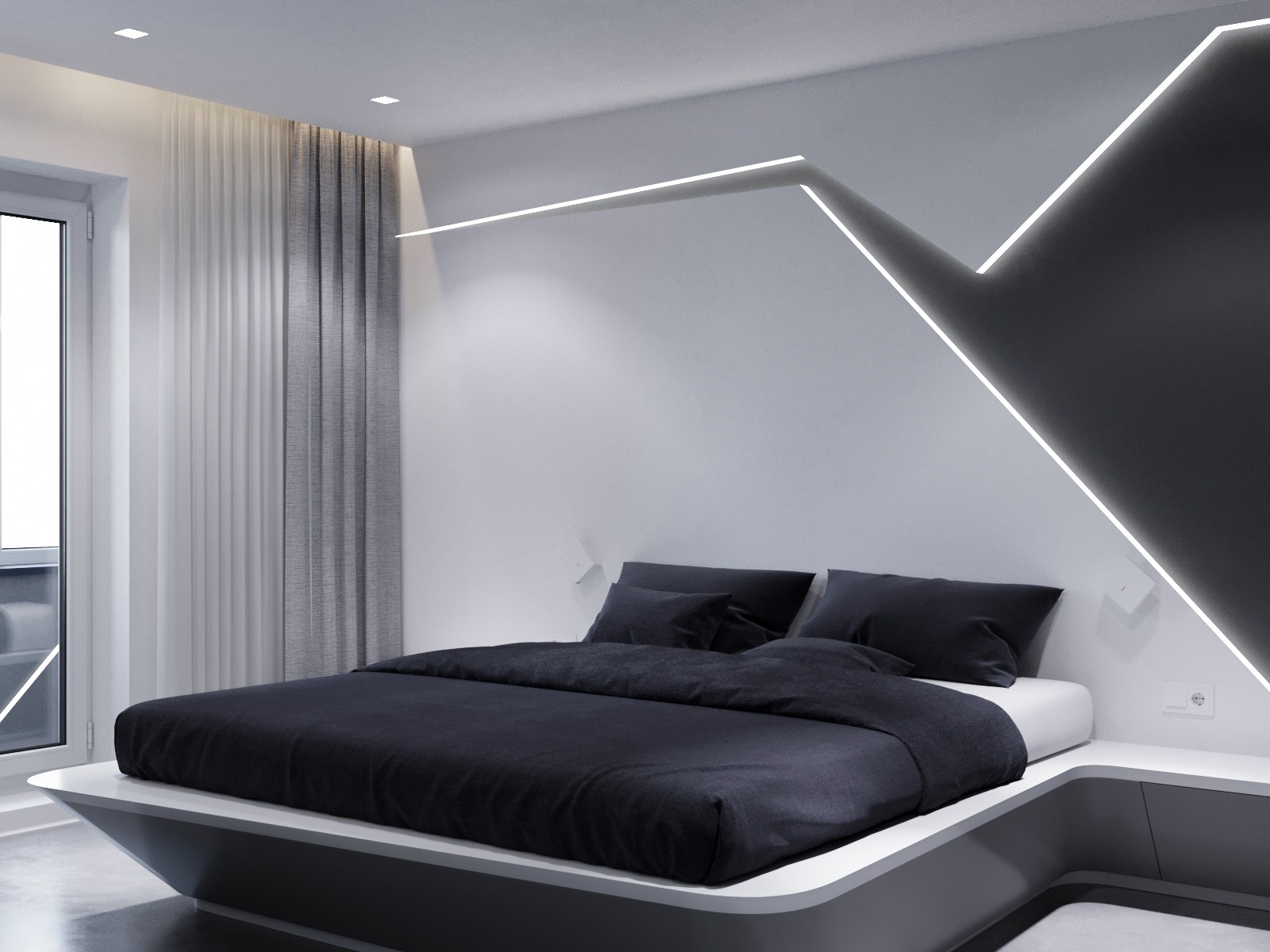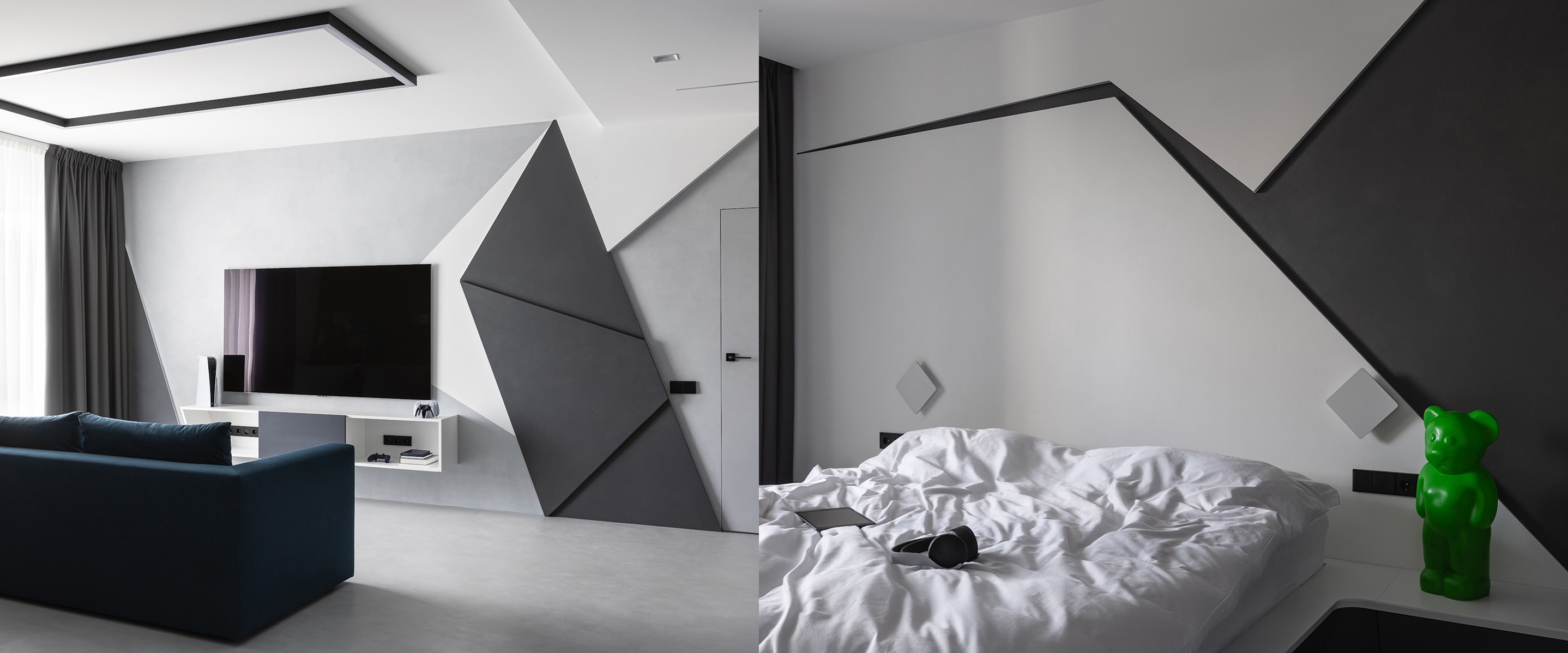В квартире предусмотрено большое количество подсветок, которые запитаны на «умный дом». В качестве декоративных элементов используются панели с подсветками, которые придают пространству объем.