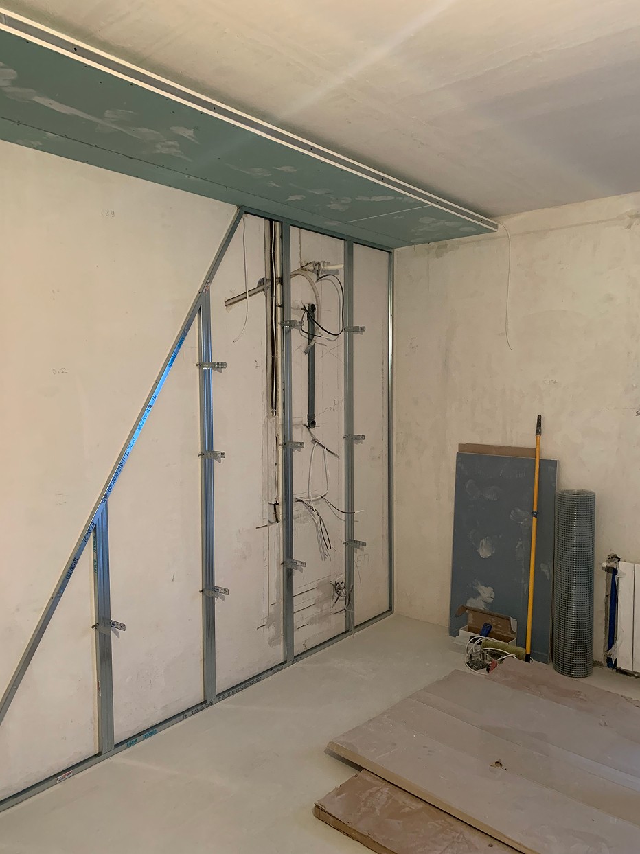 Изначально в квартире была отдельная кухня, прихожая, спальня и санузел, в результате перепланировки мы избавились от прихожей, оставив небольшую входную зону со шкафом для верхней одежды и обуви, получили объединенное пространство кухни-гостиной, гардеробную, отдельную спальню и санузел.