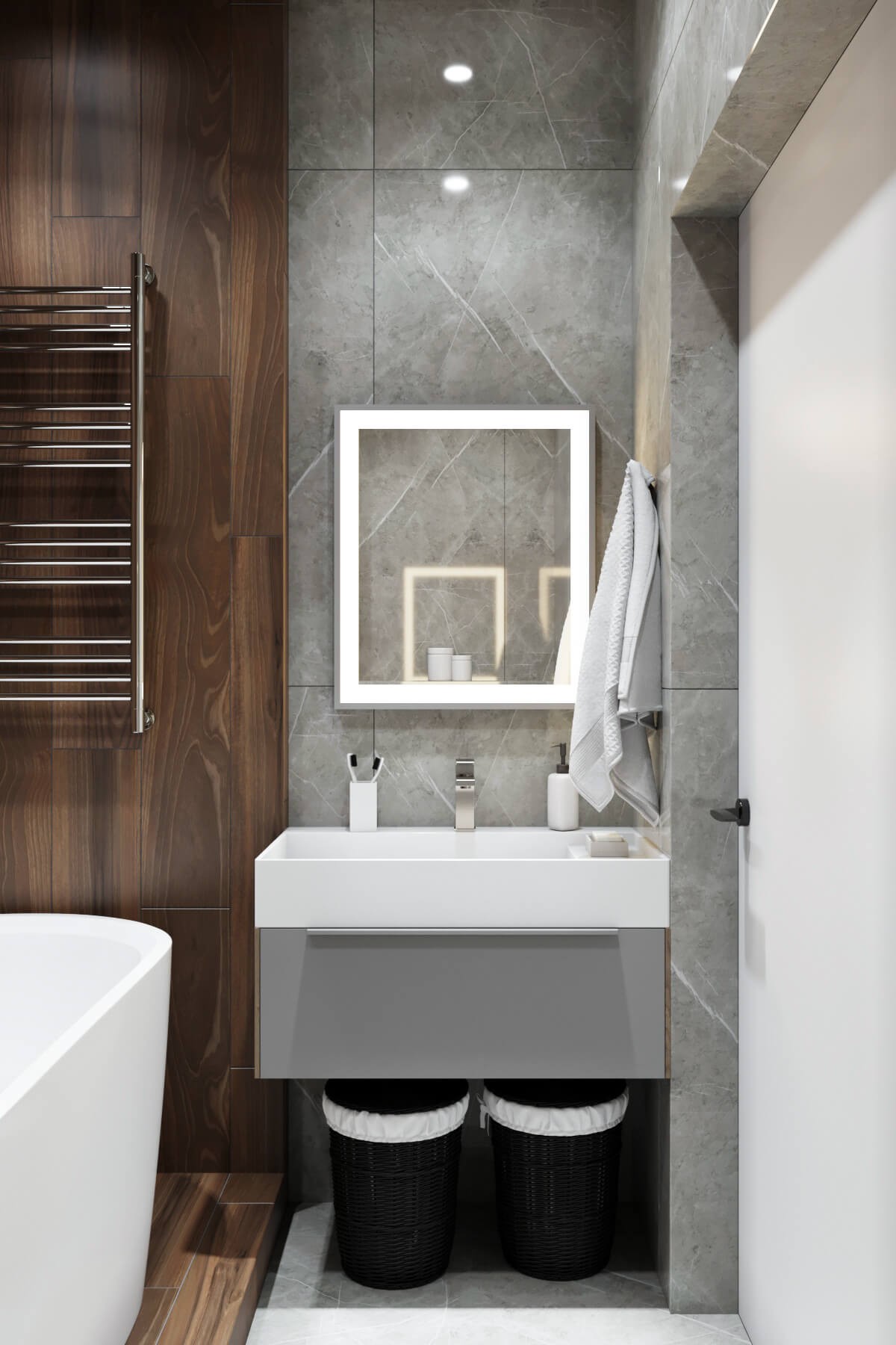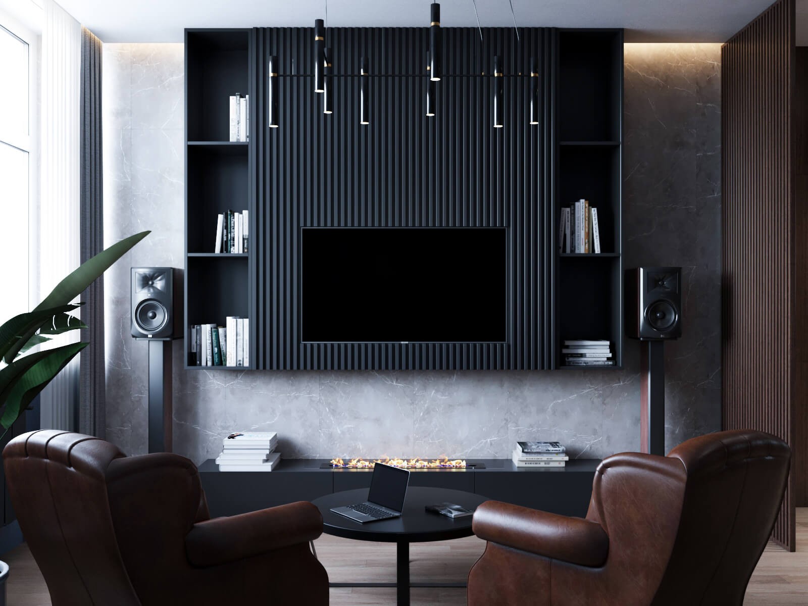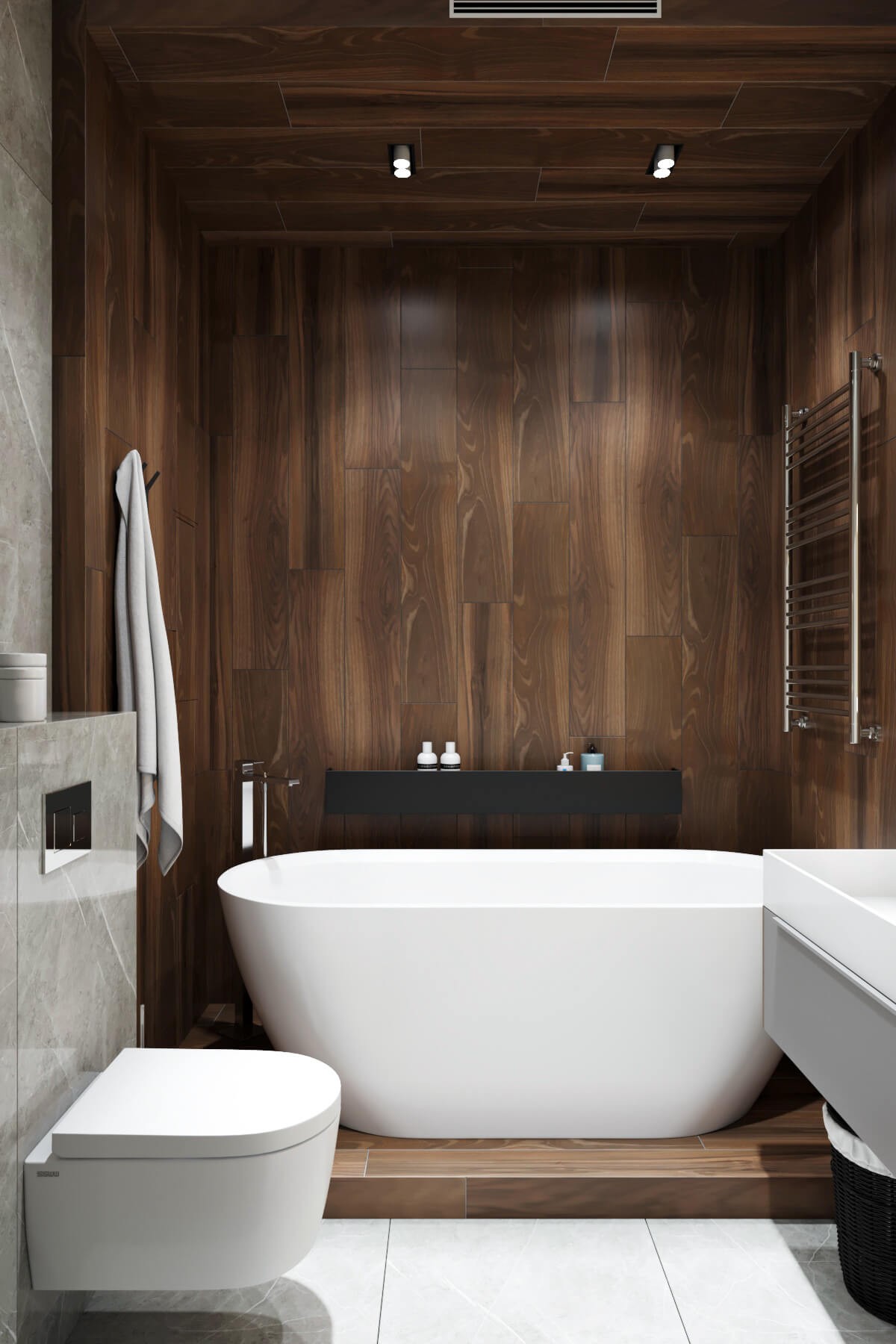 В стилистическом направление избран современный стиль с обильным количеством натуральных материалов — камень и дерево.