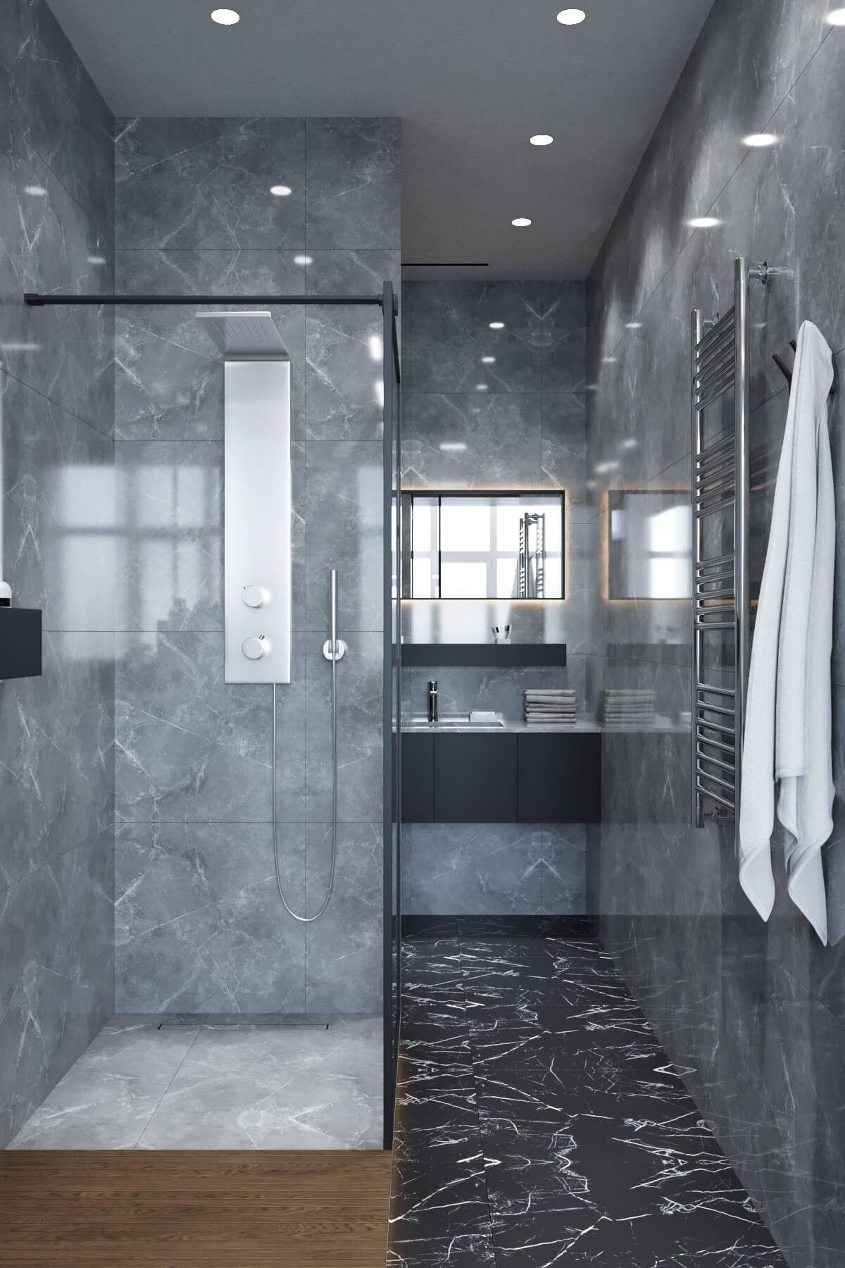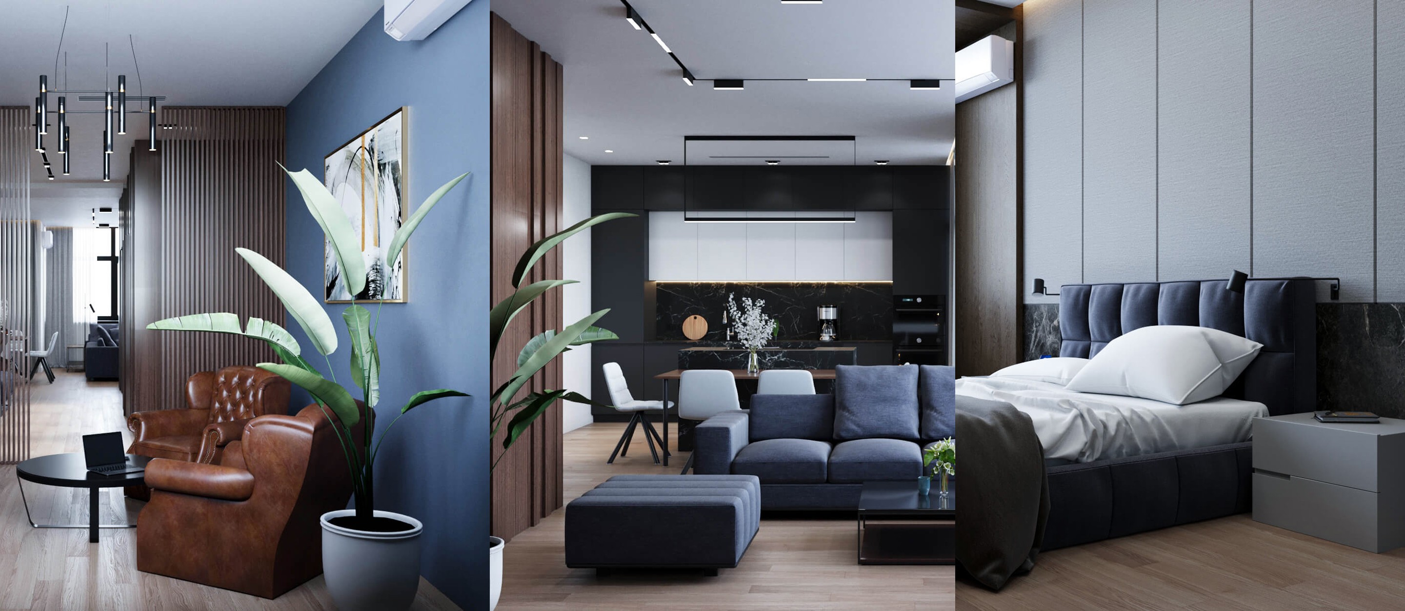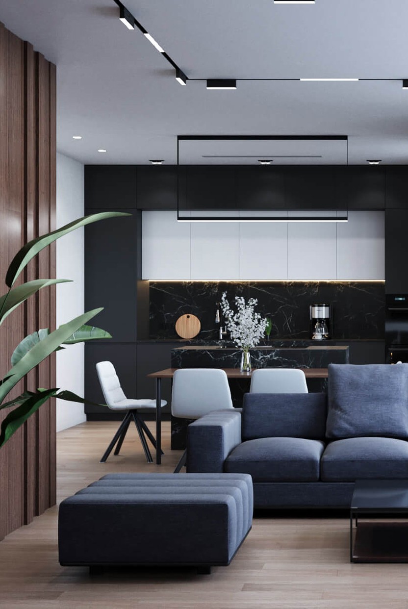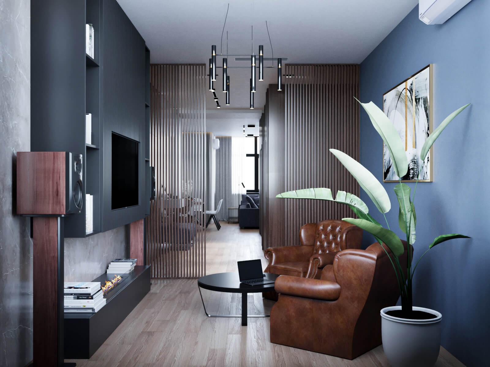 В стилистическом направление избран современный стиль с обильным количеством натуральных материалов — камень и дерево.