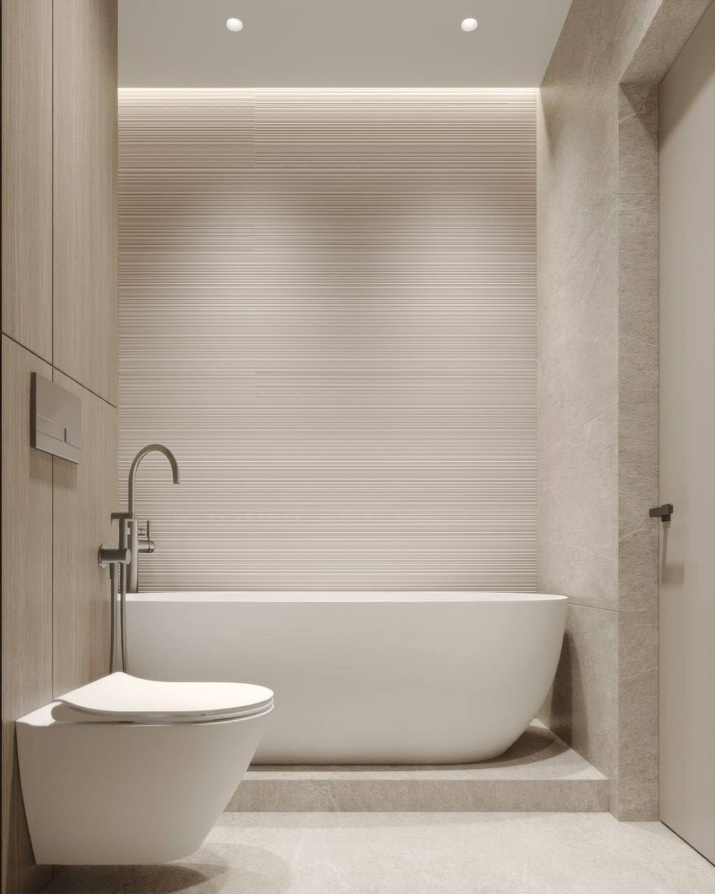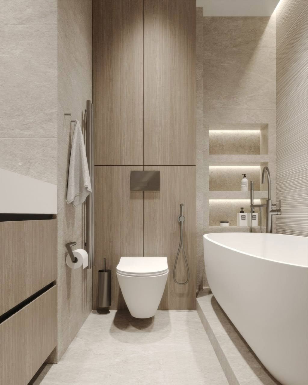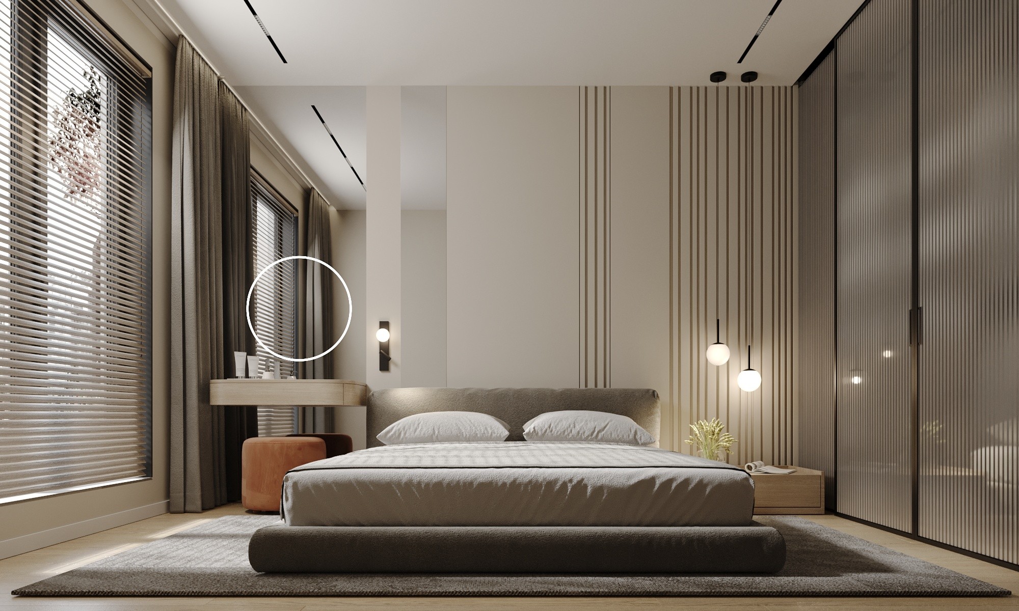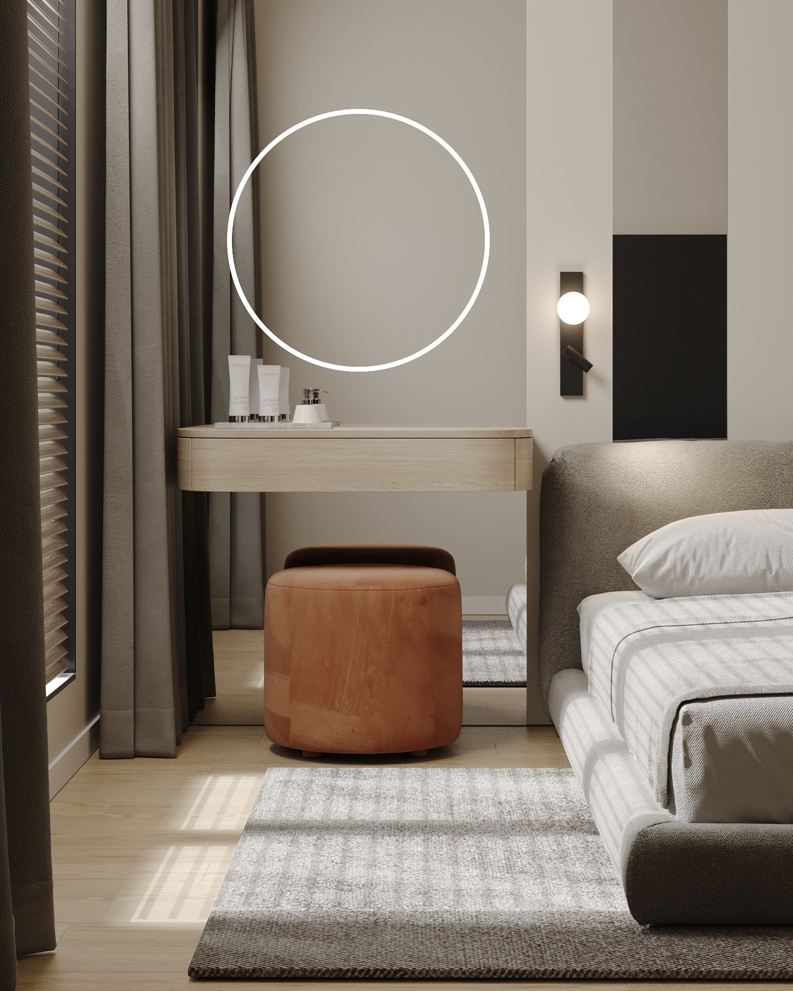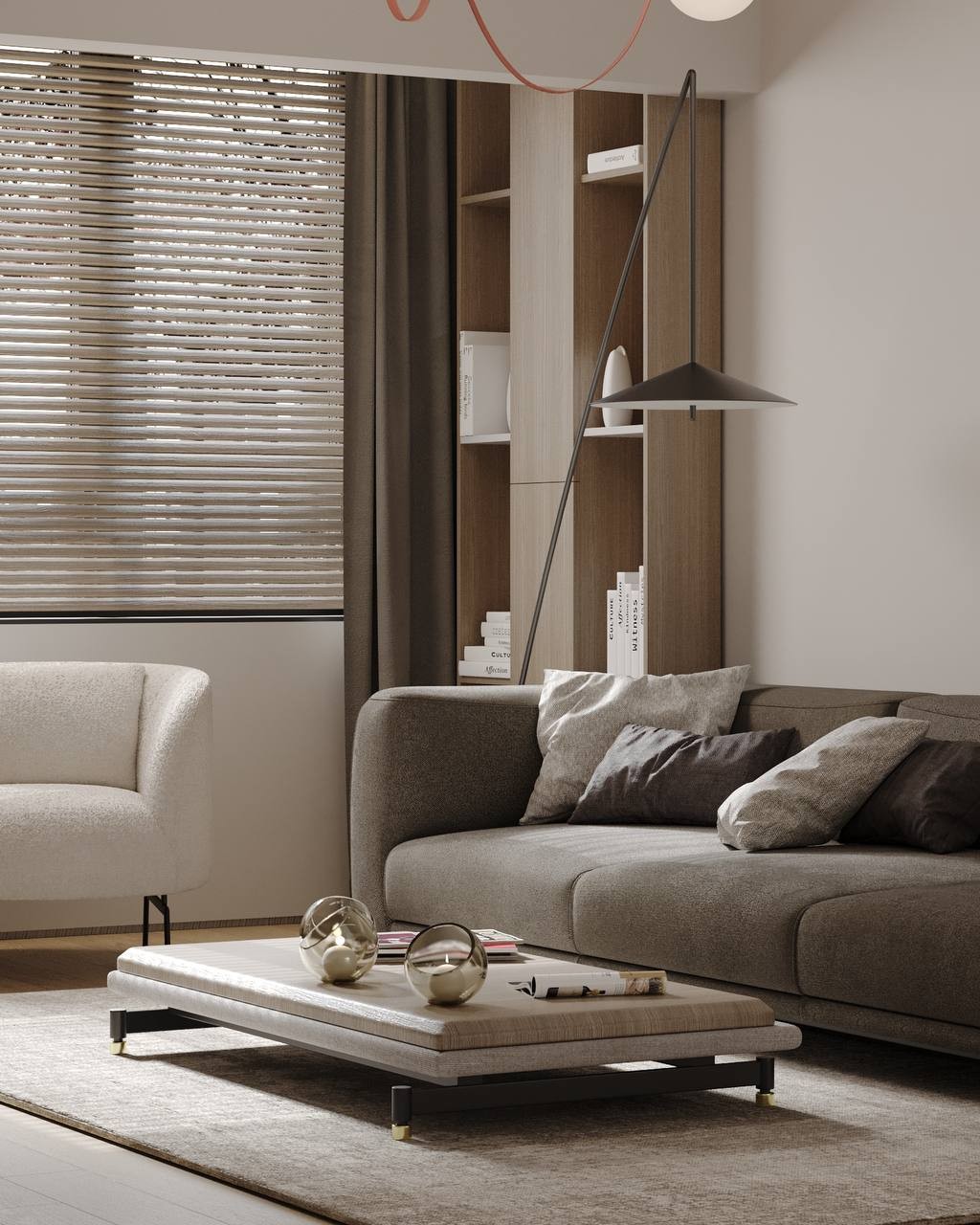 Стильный интерьер в светлых и тёплых оттенках в современном стиле.
