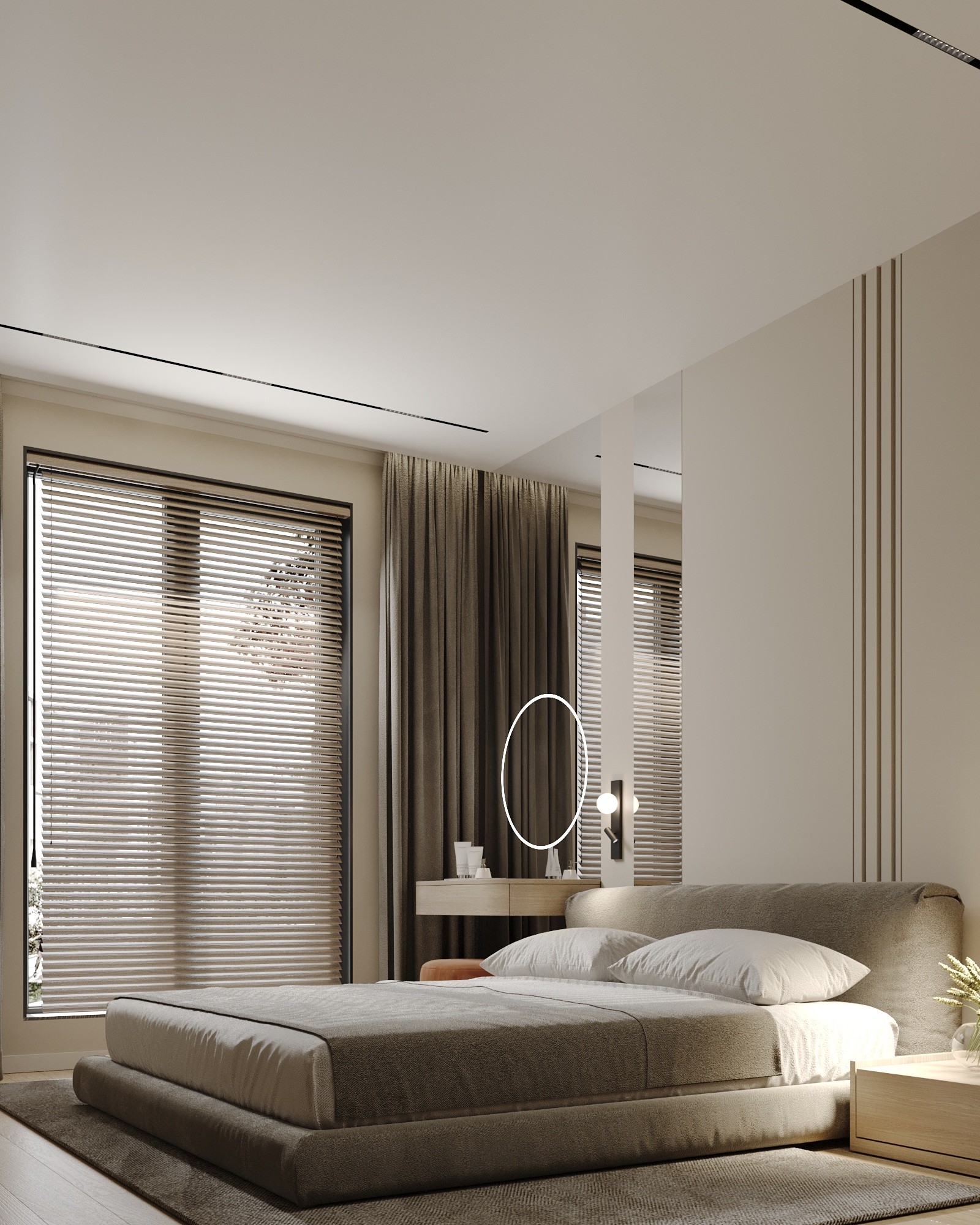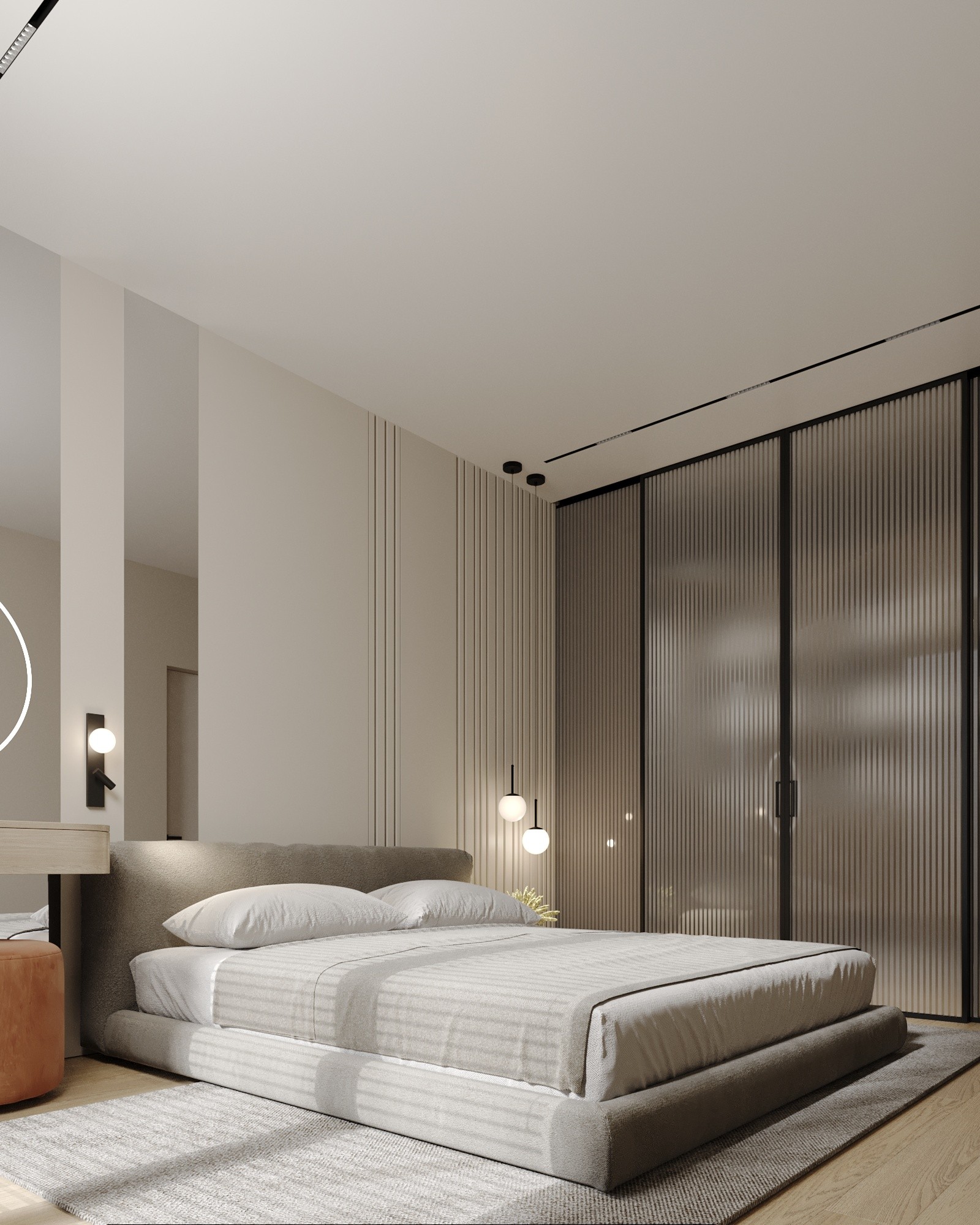 Интерьер получился максимально спокойным и современным, присутствие мягких оттенков навевают уютом, а природные материалы согревают и дают теплоту.