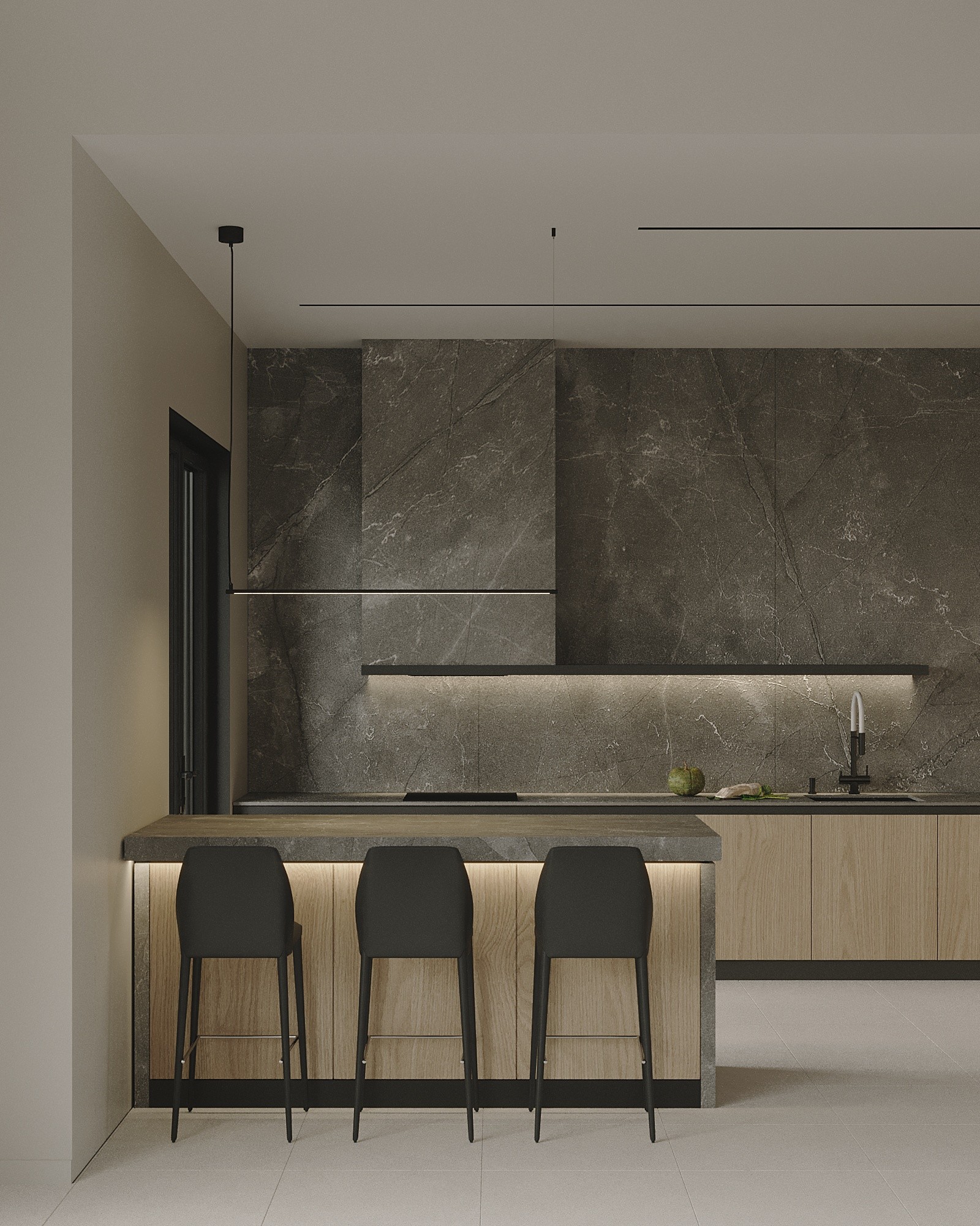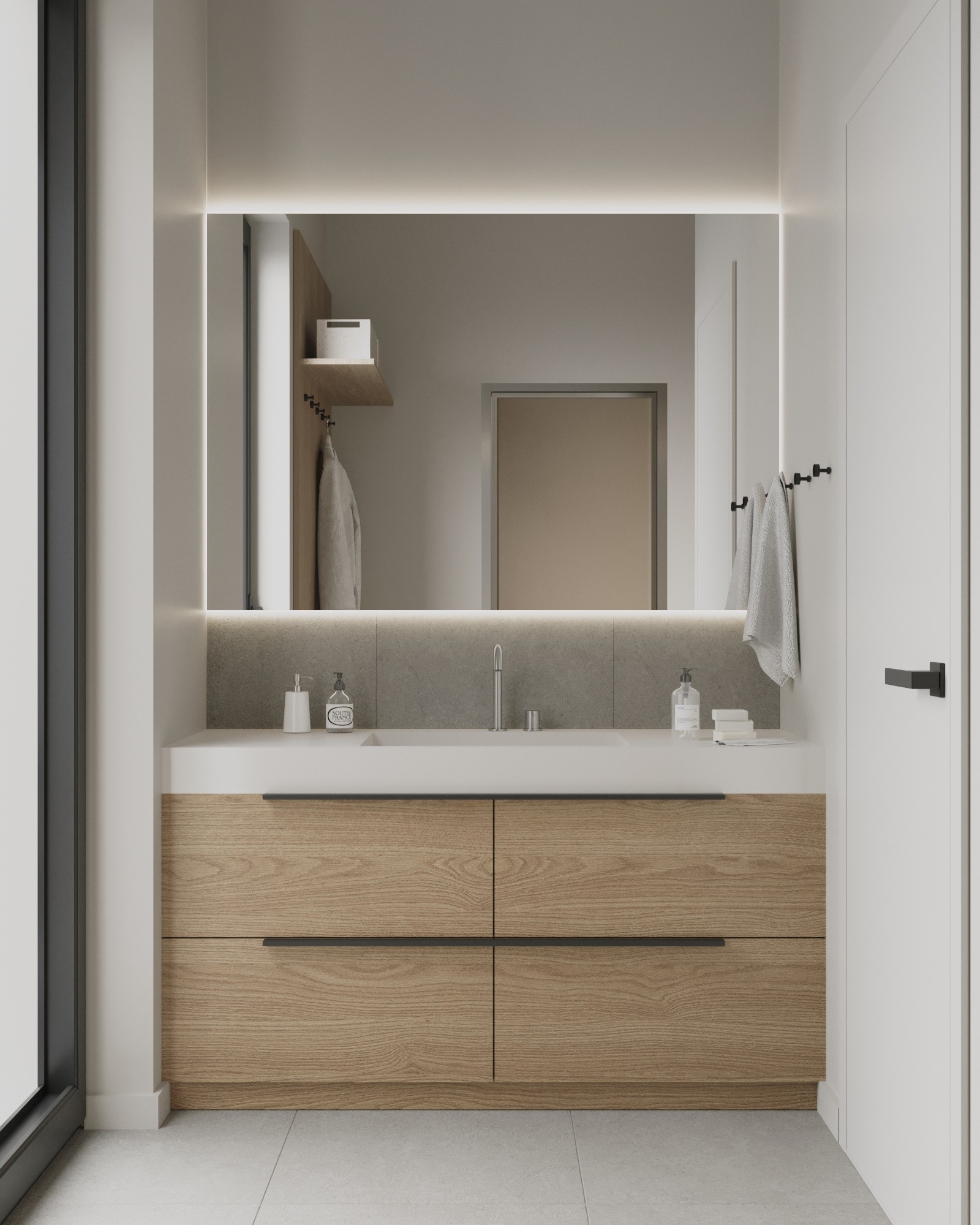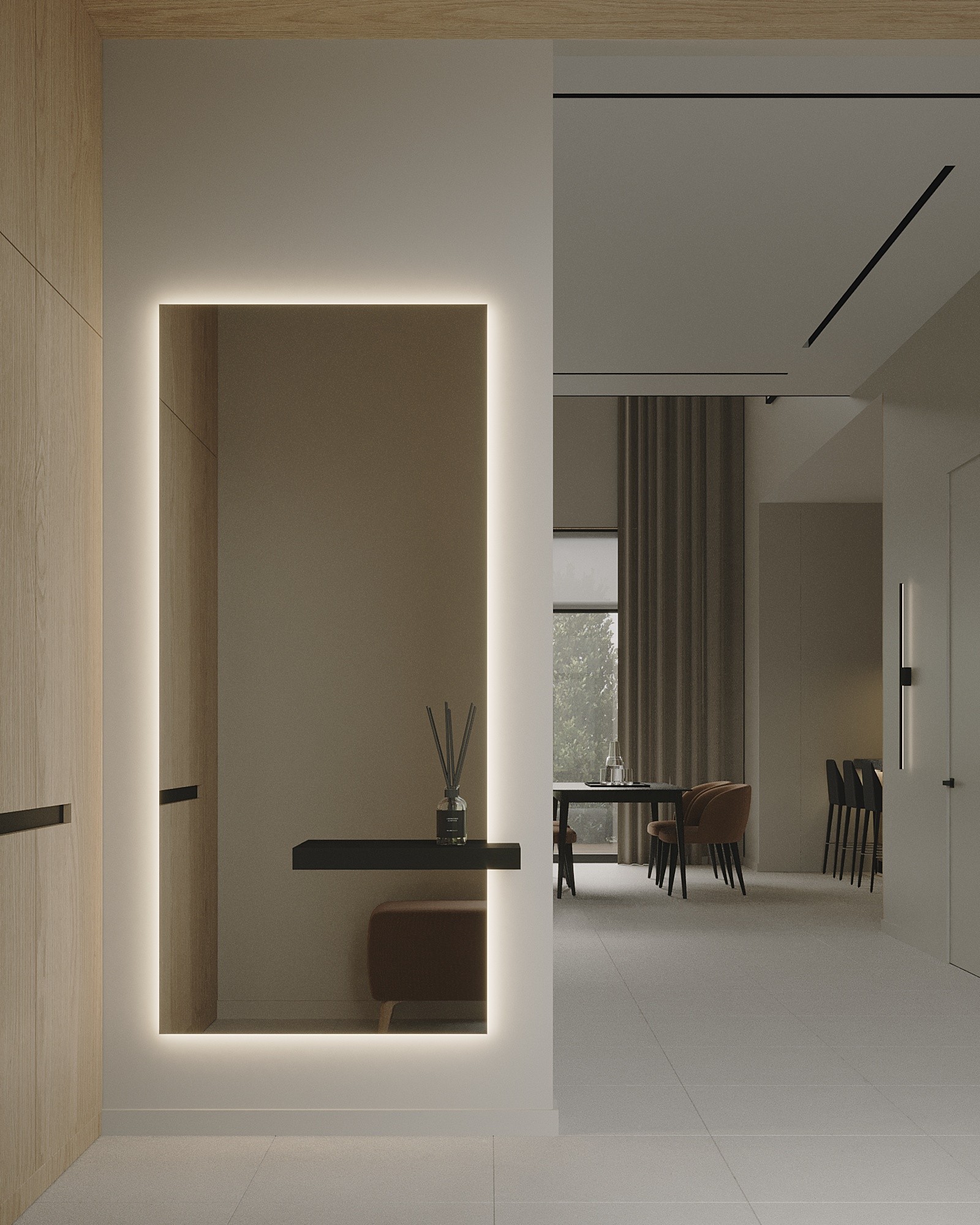 Мы стремились создать единое лаконичное пространство, поэтому главной идеей был один оттенок стен для всех помещений, это позволило соединить всё пространство между собой в единую композицию.