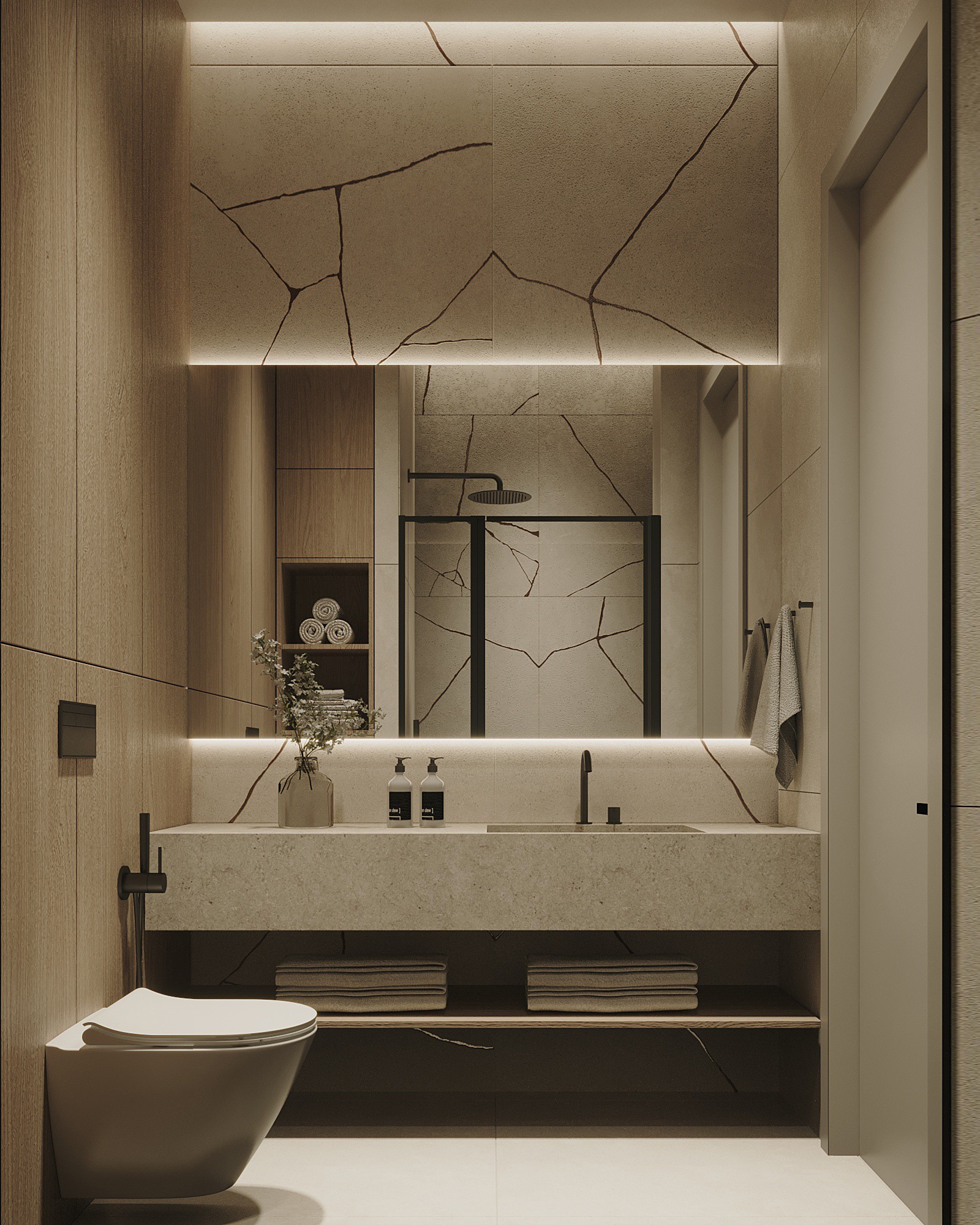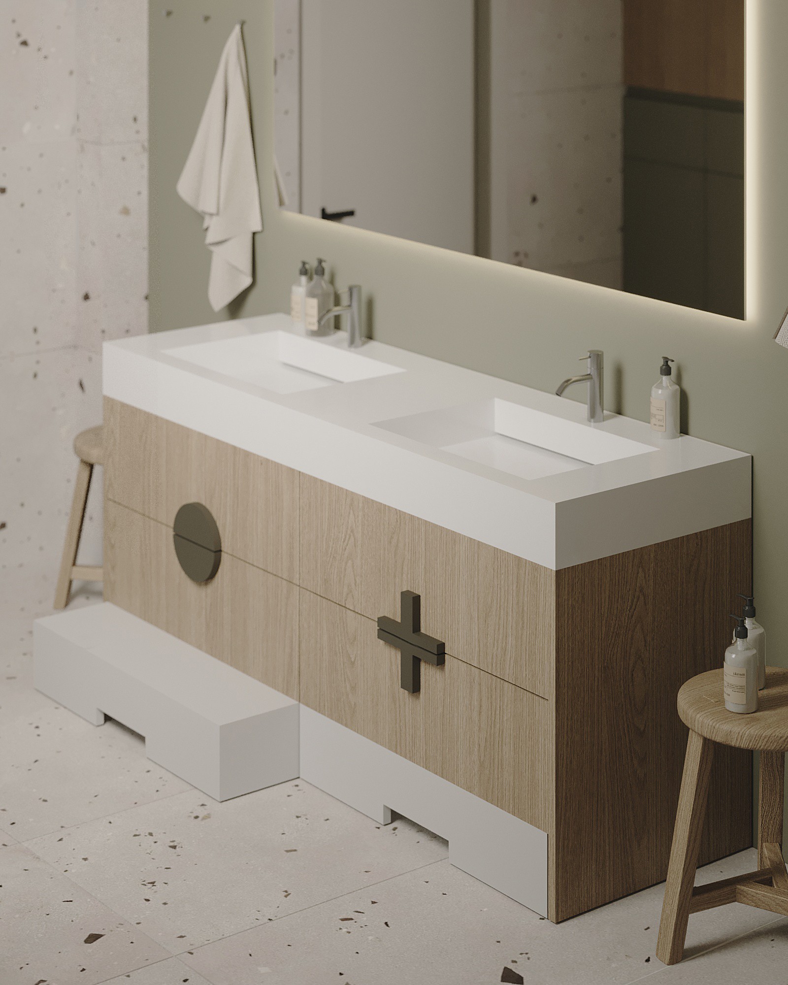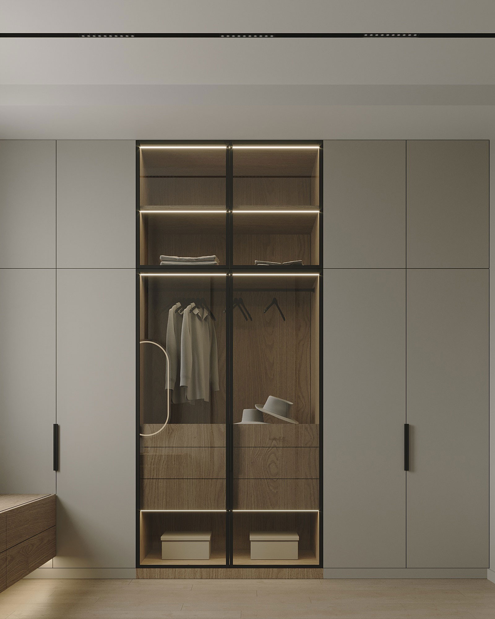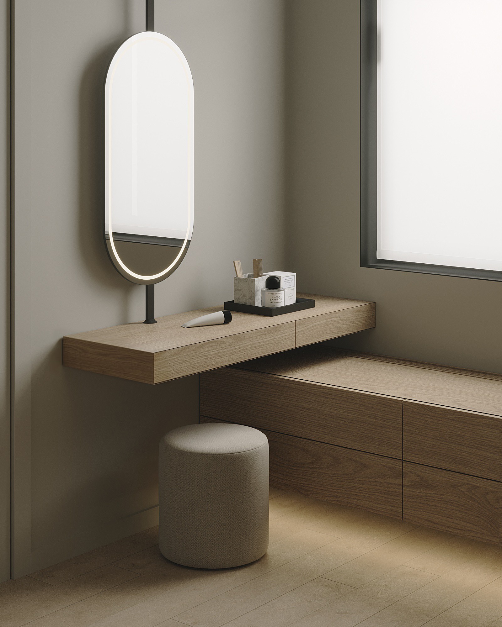Мы стремились создать единое лаконичное пространство, поэтому главной идеей был один оттенок стен для всех помещений, это позволило соединить всё пространство между собой в единую композицию.