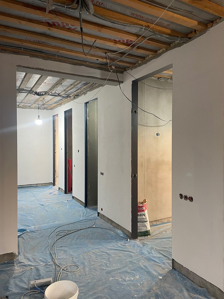Подготовительные работы, демонтажные и монтажные работы, штукатурные работы, разводка черновой электрики и вентиляции, разводка черновой сантехники.